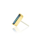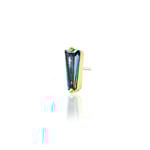 This prong set baguette displays flashes of purples and greens wrapped up in a 14k yellow gold setting.